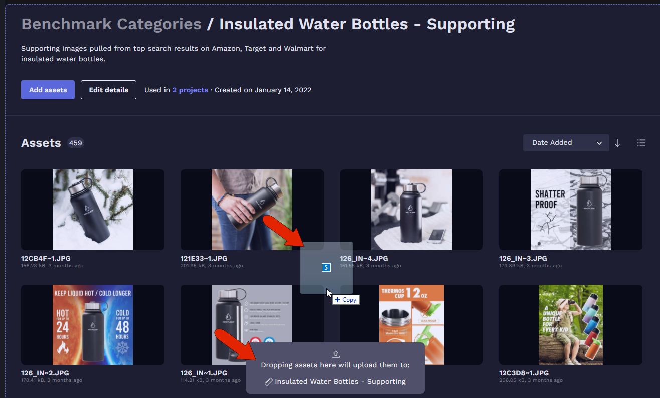 Benchmark images can be uploaded from your computer as described here. You can also copy images already added to a project or benchmark into one or benchmarks.