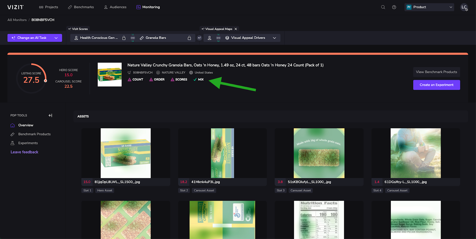 - Asset Mix - this determines how diverse your images are. A product with 8 duplicate or near duplicate assets will not resonate with your audience.