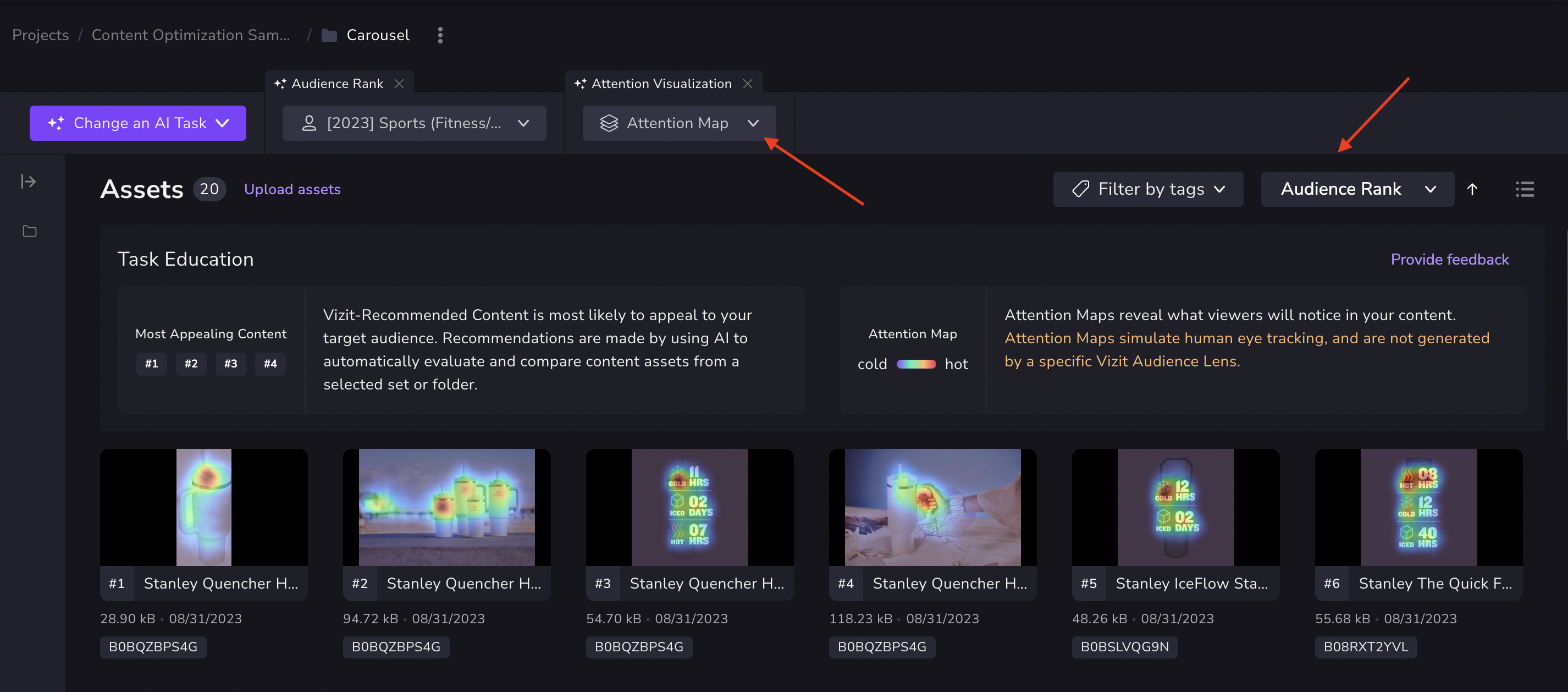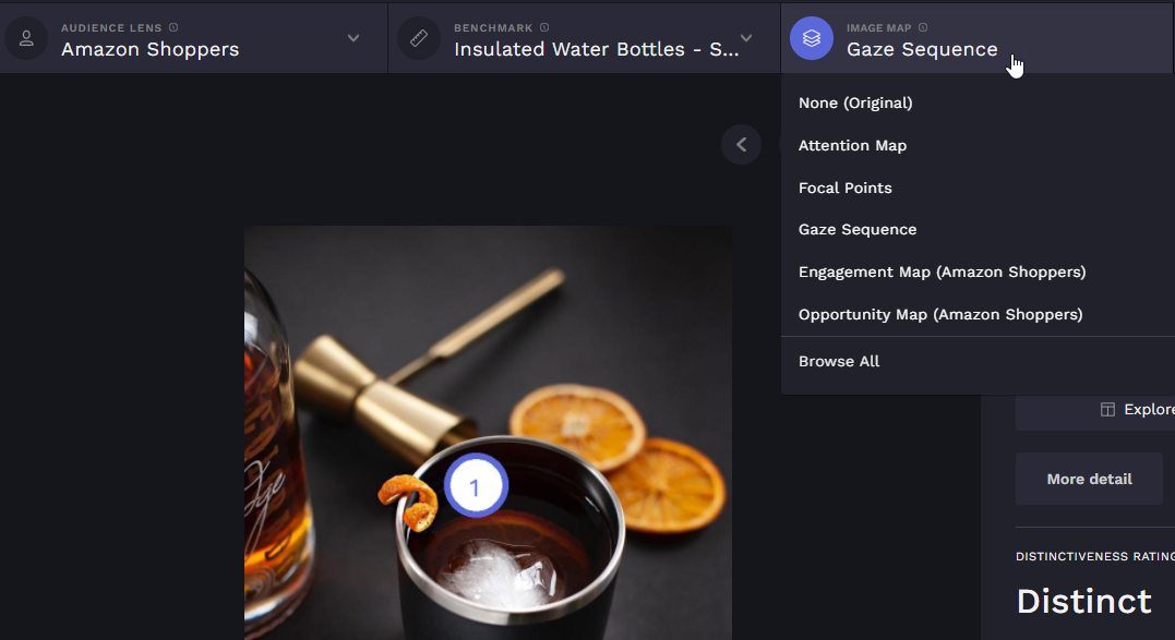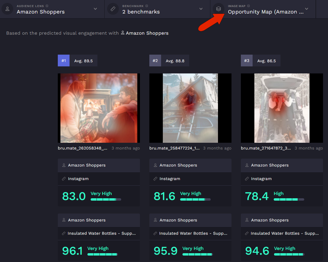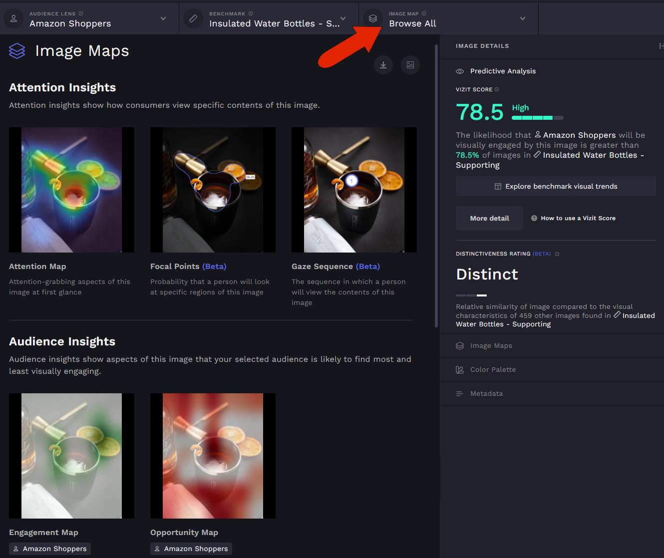 When a project is open, or a folder is open, image maps can be applied from the AI Task menu at the top. If images are listed according to audience rank, image maps can provide insight into why some images perform well while others do not.