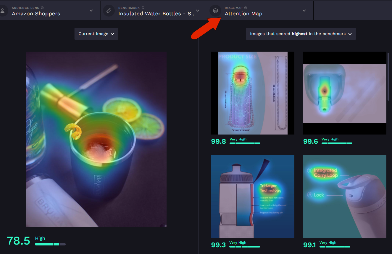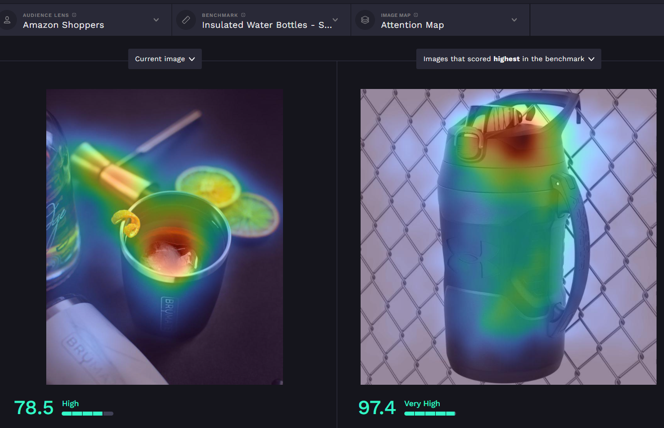 While in the visual trend view, clicking a benchmark image enlarges it. Comparing image maps side by side is a good way to explore why a specific benchmark image is outperforming the project image.