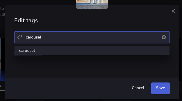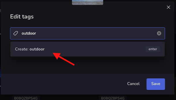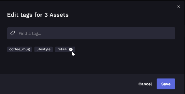 You can assign one or more tags to the selected images. To remove an added tag, hover over it and click its X icon. When finished, click Save.
