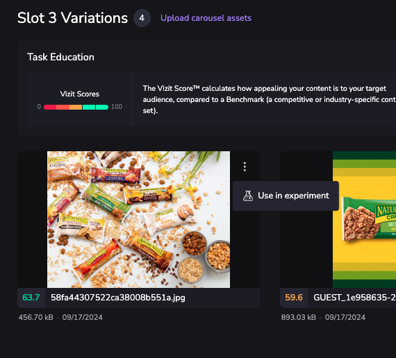 Once you have identified which image you’d like to use, choose “Use in experiment” within the action menu. The other variations will remain in that slot in the event you want to choose a different image later.