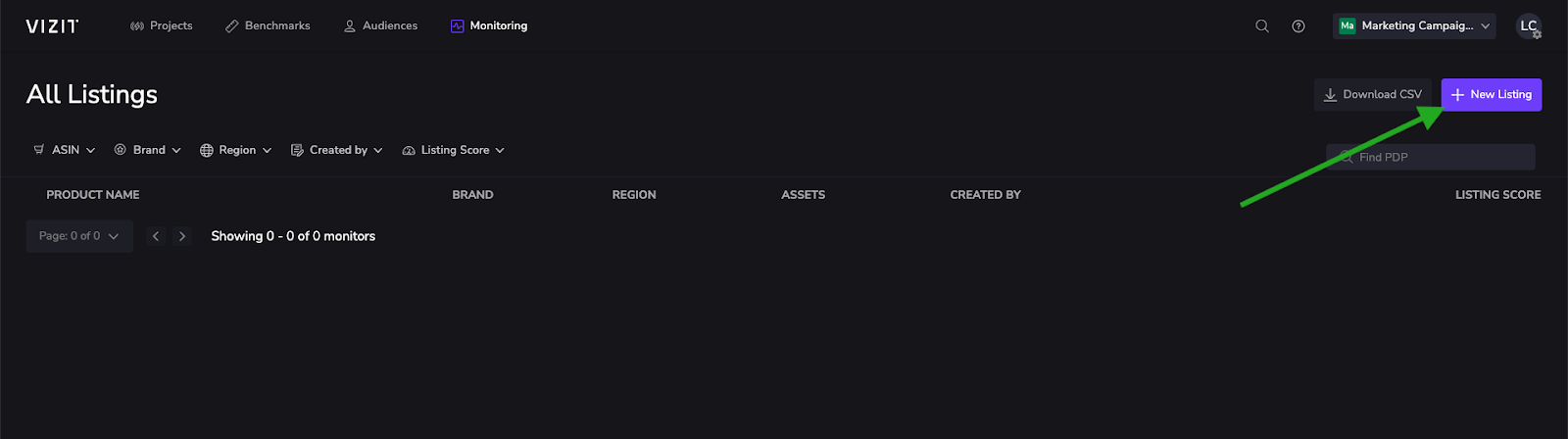 Once you’ve submitted your request, Vizit will take about 10-15 minutes to import assets, create benchmarks and generate Monitor scores.