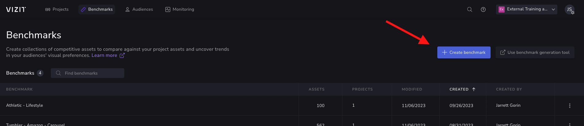 There are two ways to create a new benchmark. First, be sure you are in the correct workspace.