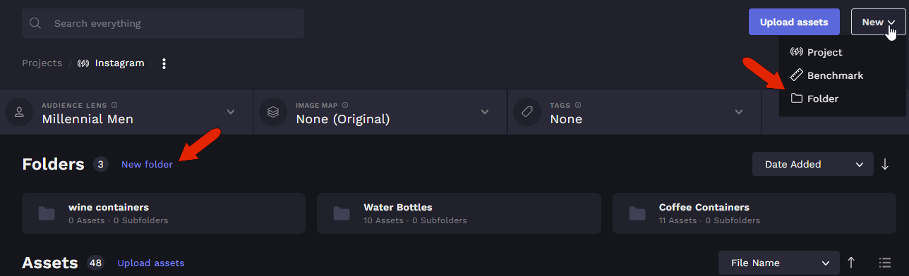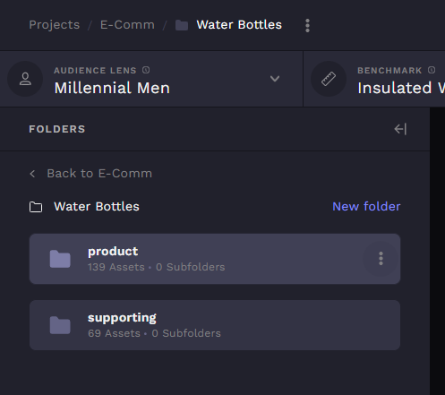 Folders and sub-folders can be added to a project, to segment the images contained within the project. For example, if your project contains images of a pet food brand, you could create separate folders for dog food and cat food. And within those folders, you could create sub-folders for different product lines of dog and cat food.