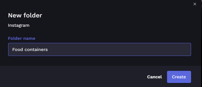 In the New folder window, the project is listed at the top. Assign a folder name and click Create.