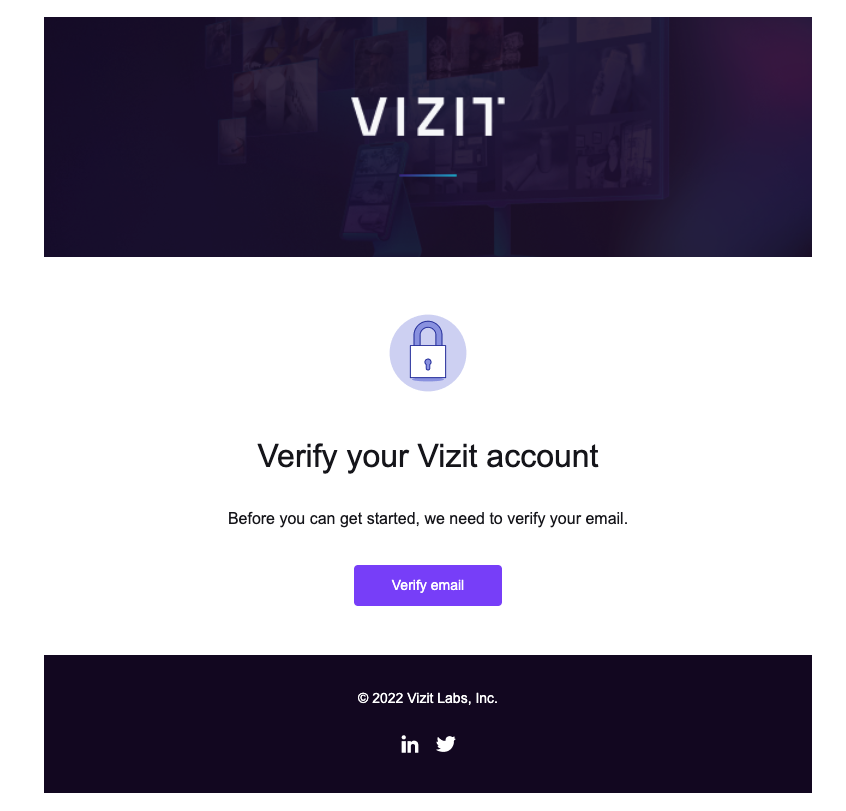 You will then receive a second email from support@vizit.com prompting you to verify your Vizit account. Click Verify Email.