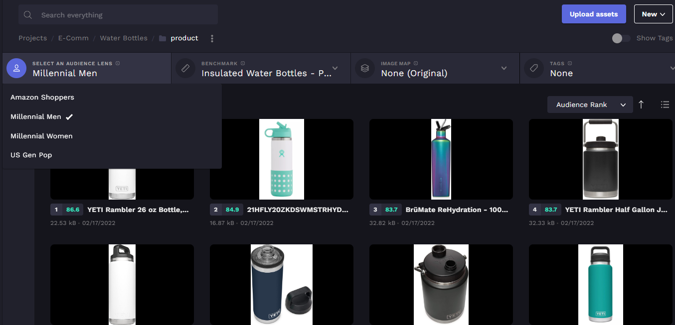 Open the project or open the folder that contains the images, and choose the audience for which you want to see scores.