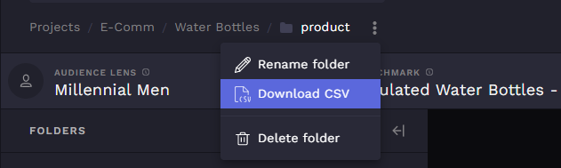 Click the three-dot icon next to the project or folder name, and choose Download CSV.