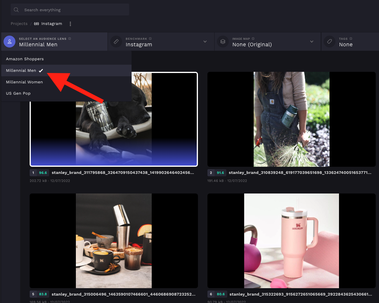 Open the project or open the folder that contains the images, and choose the audience for which you want to see scores.