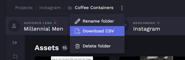 Click the three-dot icon next to the project or folder name, and choose Download CSV.