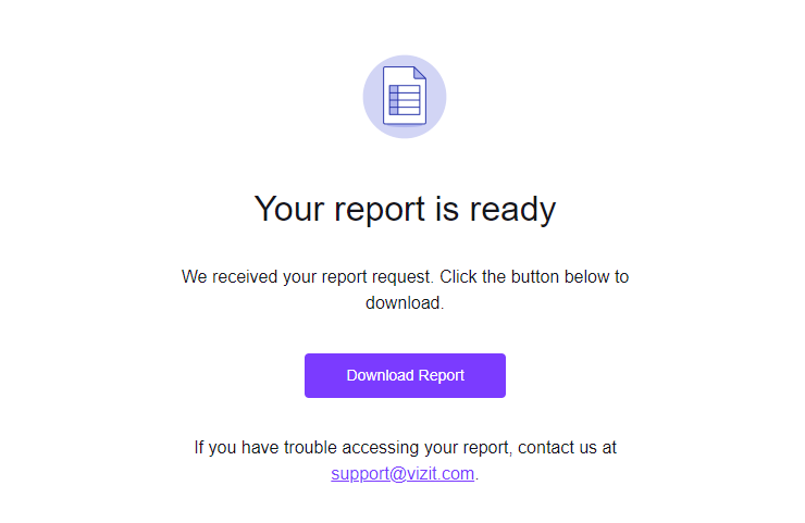 Within minutes, your CSV will be available to download from the email that is sent to you from support@vizit.com. Within the email, click on the "Download" button. This will bring you back to your browser and the download will be available at the bottom of your browser screen.