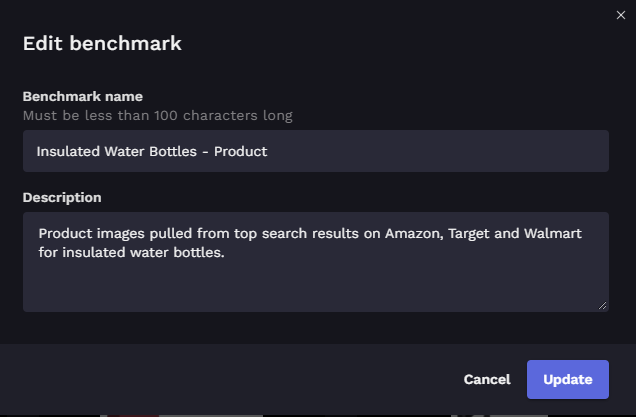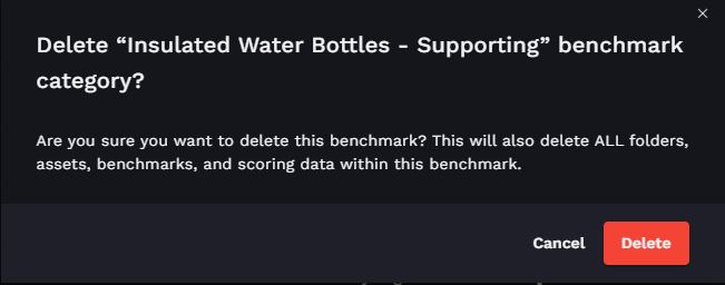 If you delete a project, you’ll need to confirm. Keep in mind that deleting a project also deletes the images in the project, as well as any scoring data. If any project images are also used in benchmarks, those images will remain in their benchmarks.
