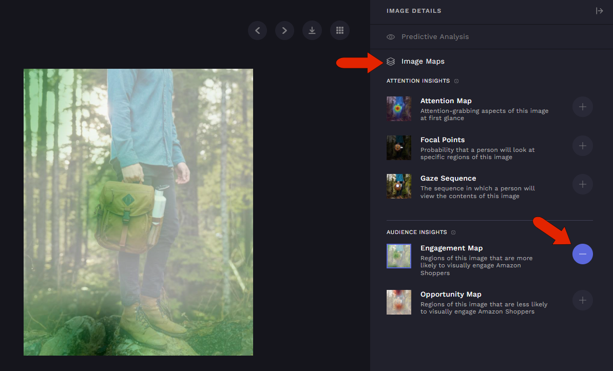 In the Image Maps section, you can choose one of the image maps to display, such as Attention Map or Engagement Map.