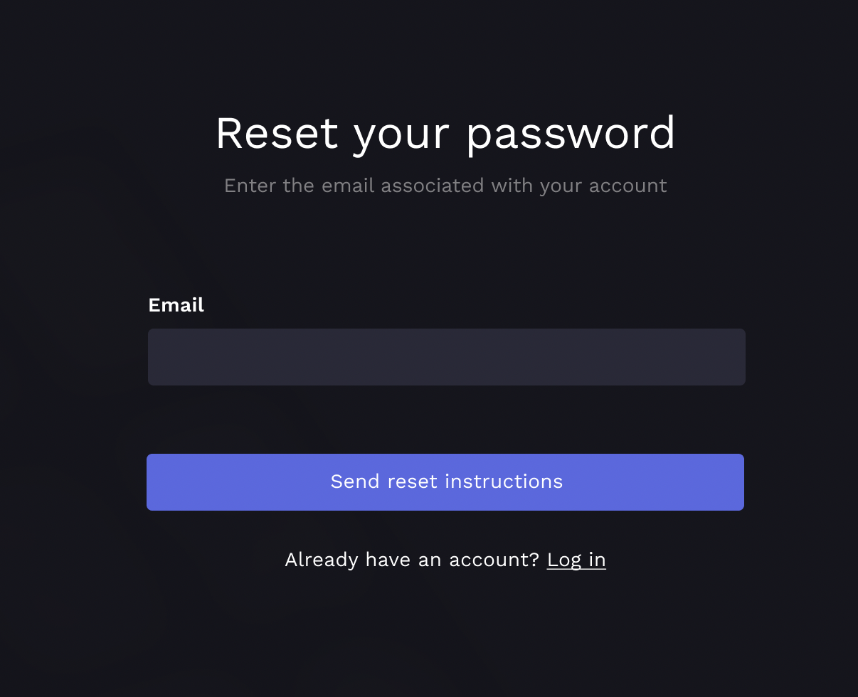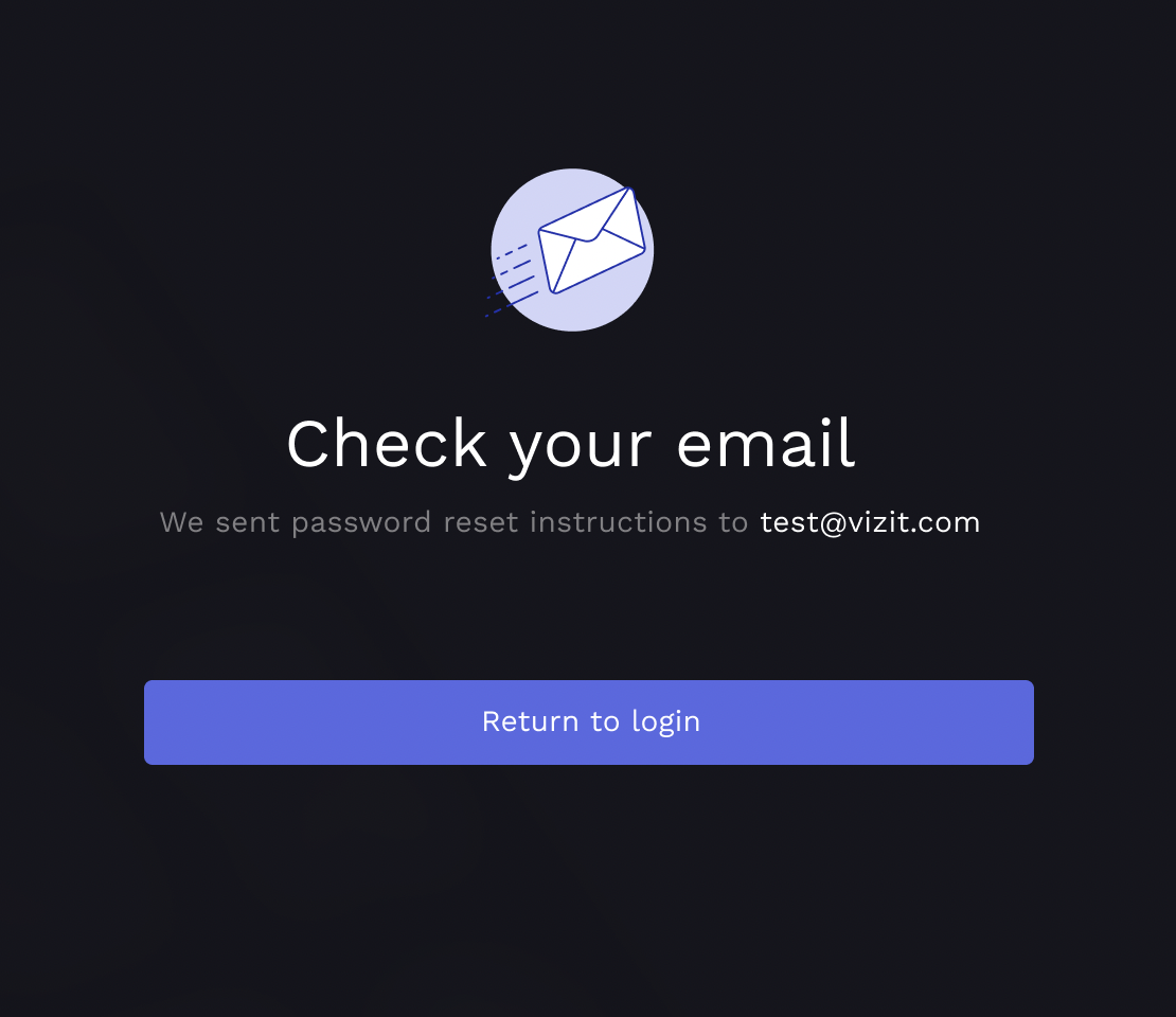 On the next screen, enter the email associated with your Vizit account and click "Send reset instructions".