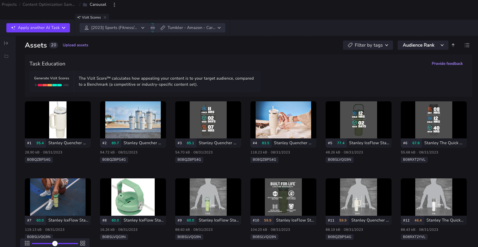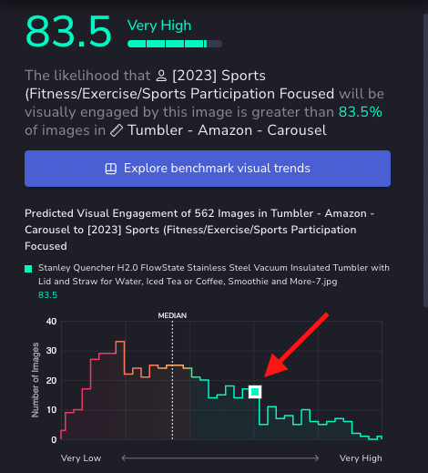 An image’s Vizit score indicates how well that image performs against a benchmark, through the lens of a specific audience.