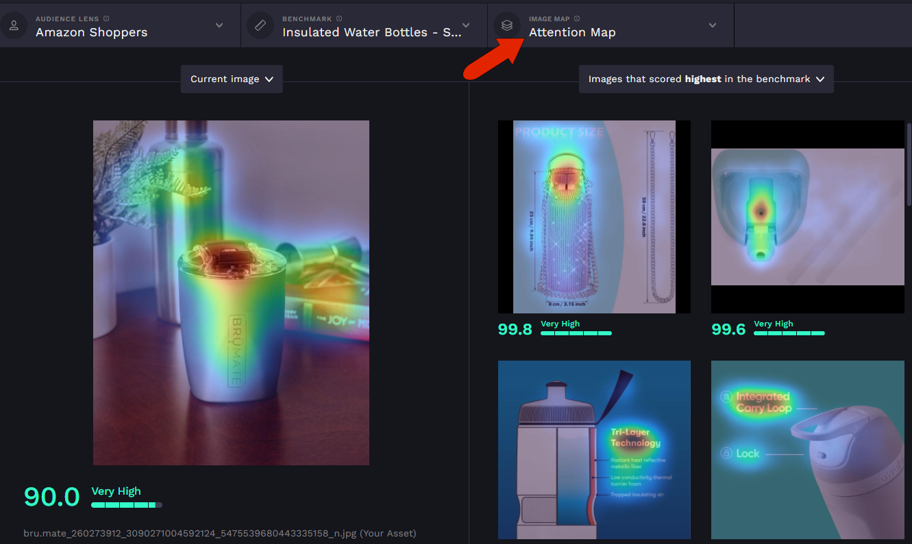 In addition to viewing the images themselves, you can apply one of the image maps, such as Attention Map, for more specific comparisons.