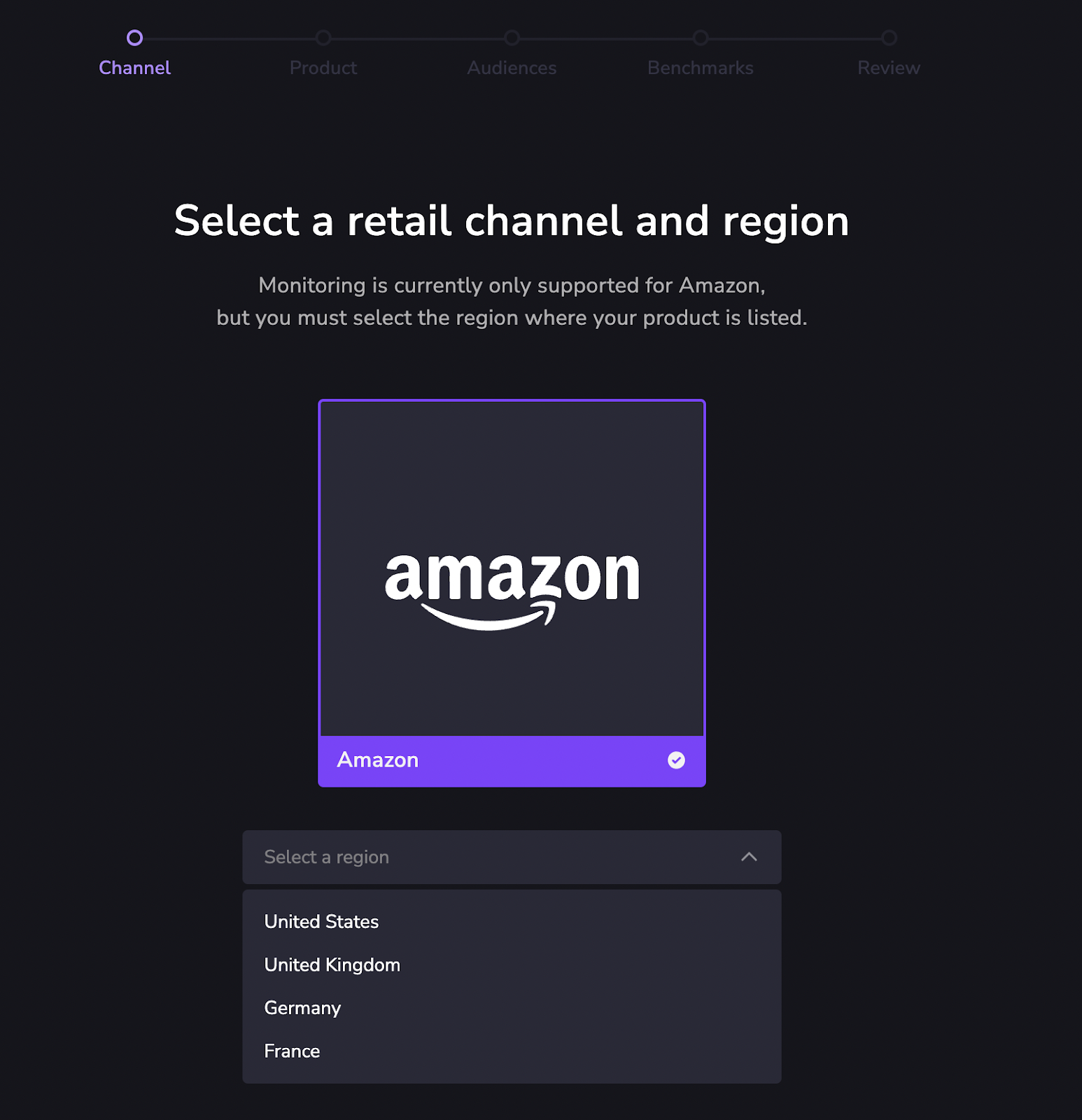 Next, select the retailer and region you want to pull the product from. Vizit supports monitoring products from the following regions: