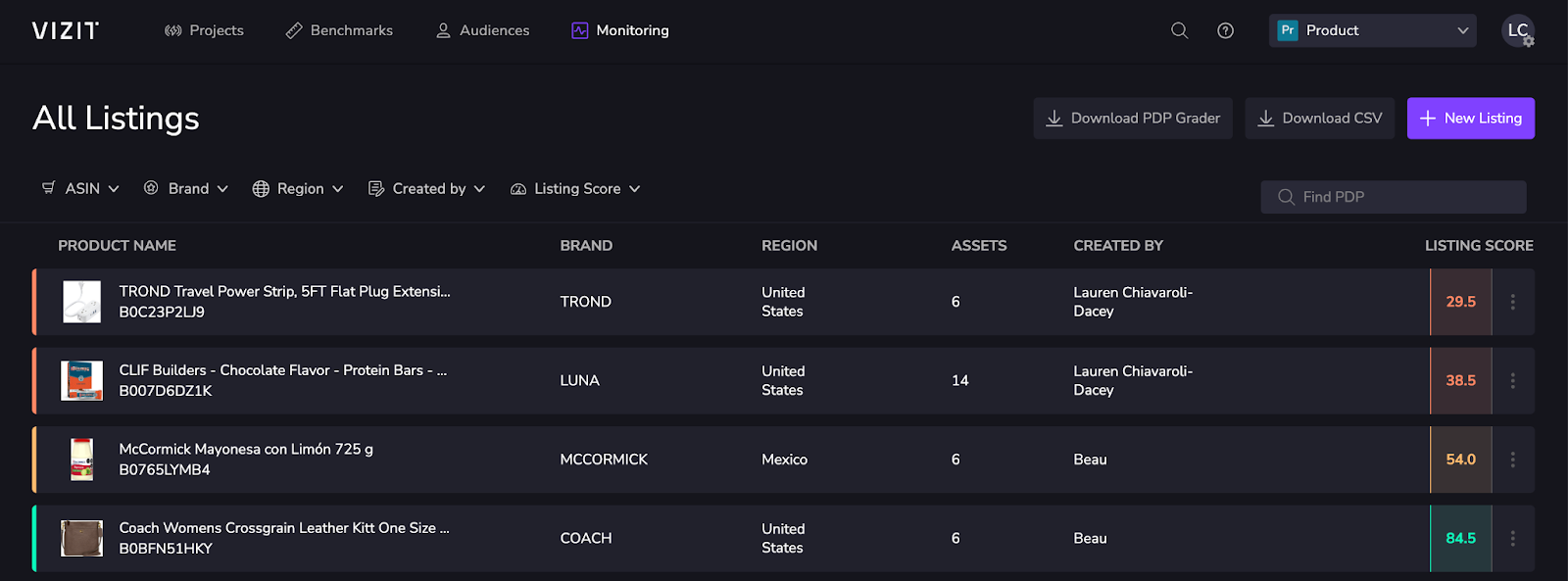 Monitoring is an automated tool in the Vizit platform that will track the visual effectiveness of your product listings on certain retailers in real-time and recommend ways to optimize your listing to be more effective.