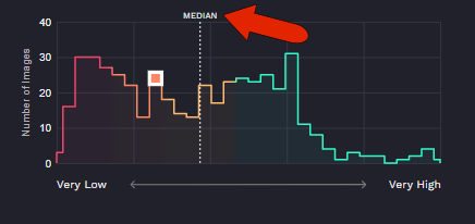 The median is a good indicator of the overall audience success of benchmark images. In the example above, there are more benchmark images with low and very low scores than those with high scores. So the median score - the overall audience engagement with these benchmark images - is relatively low.