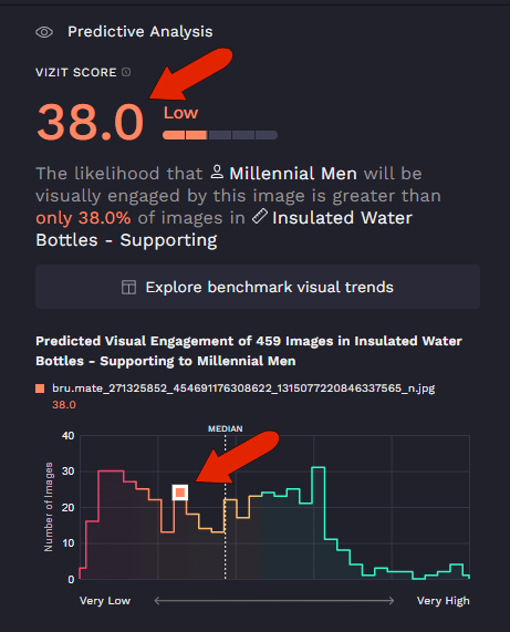 Higher scoring benchmark images are those more likely to visually engage your audience, when compared to the entire set of benchmark images. These are the assets you should look to as a reference for improving your own images.