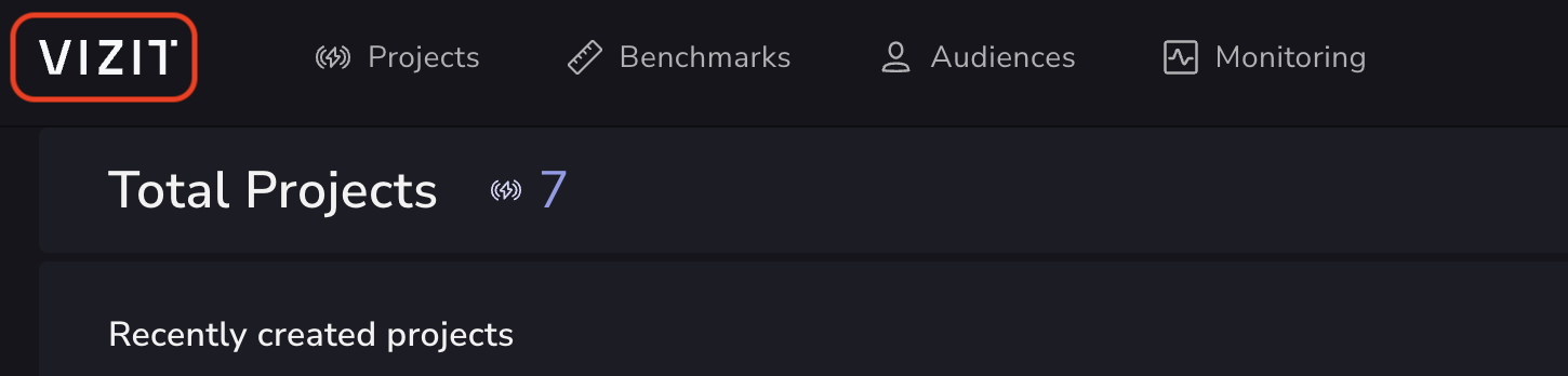 From anywhere within the Vizit system, you can return to your workspace dashboard by clicking the Vizit logo at the top left.