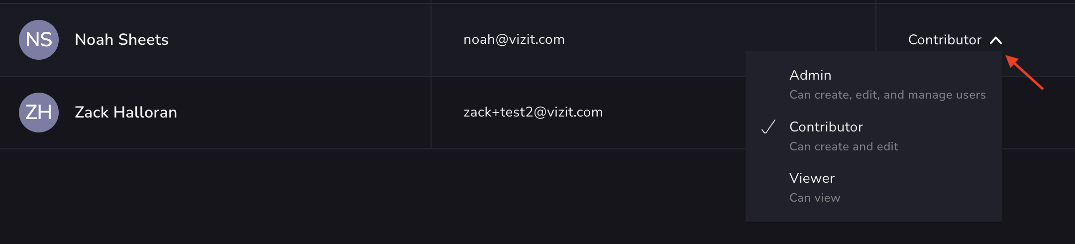 Admins can also change user roles, by clicking the ellipses next Role field and choosing a new role.